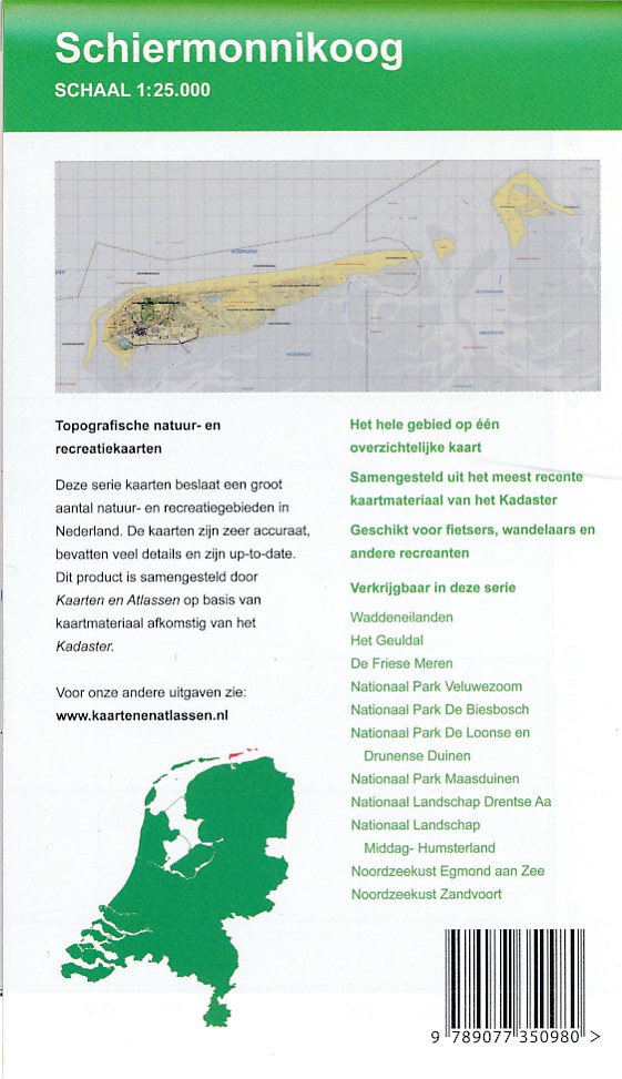 "Kaarten en Atlassen" is de uitgever van een nieuwe reeks van topografische natuur en recreatiekaarten van Nederlandse regio's op een schaal van 1:10.000, 1:25.000 en 1:50.000. De kaarten zijn gedrukt op milieuvriendelijk papier, zijn waterafstotend en scheurvast.