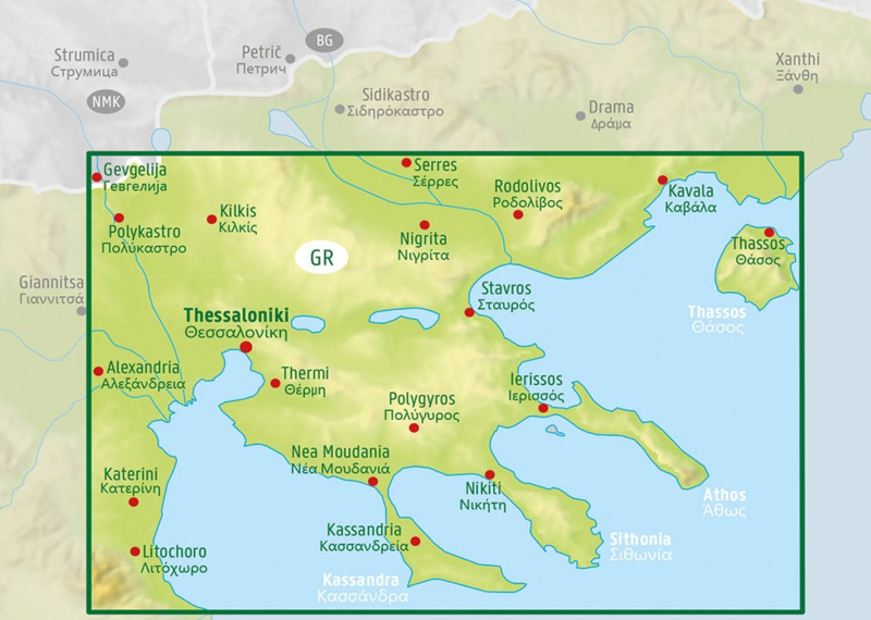 Chalkidiki - Thasos - Olympos T10 f&b 1:150 000 Deze gedetailleerde landkaart van Chalkidiki - Thasos – Olympos is zeer geschikt voor het plannen en voor het rondtrekken door het land. Het wegennetwerk is goed weergeven, zowel de hoofdwegen, provinciale en lokale wegen.