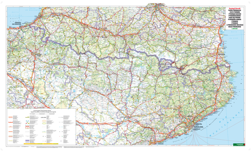 Zeer goede wegenkaart van de Pyreneeën (Frankrijk en Spanje) met schaal 1:400.000.