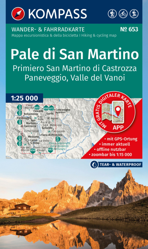 Wandelkaart Pale di San Martino - Fiera di Primiero | Kompass 653 | 1:25.000 | ISBN 9783991544562