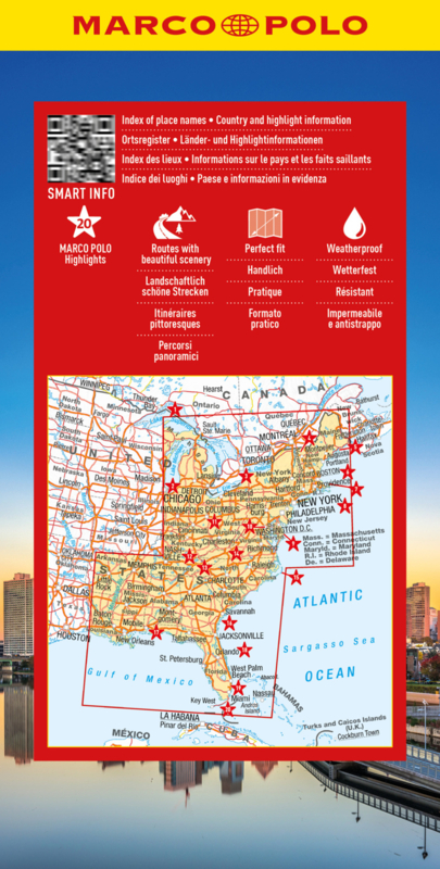 Voor een kaart die een dergelijk opppervlak weergeeft is deze behoorlijk gedetailleerd. Marco Polo USA Oost is dan ook een prima wegenkaart om een reis door het oosten van de USA te plannen. Deze landkaart heeft een plaatsnamenregister, een afstandentabel, aanduiding van schilderachtige routes en bijgeleverde markeringsstickertjes die er ook weer af kunnen, zodat u steeds uw plannen weer kunt wijzigen.