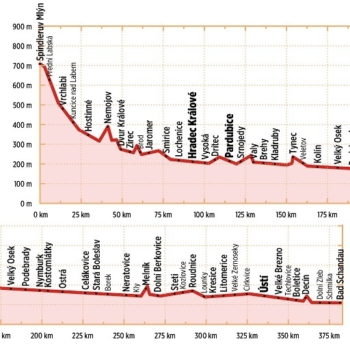 Die Gesamtlänge des Hauptradweges entlang der tschechischen Elbe beträgt knapp 375 Kilometer. Die Varianten und Ausflüge haben eine Länge von ungefähr 250 Kilometern.