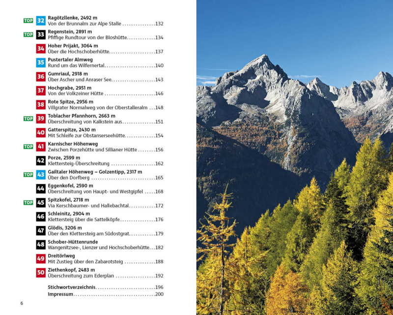 Die Fülle dieser überaus vielfältigen Gegebenheiten ausschöpfend, hat der Autor Mark Zahel eine ansprechende Mischung aus Klassikern und geheimen Favoriten, aus anspruchsvollen Alpintouren und leichten Wanderungen auf halber Höhe, aus Gipfelzielen und Panoramawegen, Hüttentreks, Alm- und Seenwanderungen zusammengestellt. Ein wenig stärker orientiert sich der Inhalt an ambitionierten Bergwanderern, die über solide alpine Erfahrung und Ausdauer verfügen. Häufig sind jedoch Varianten oder Teilbegehungen mit abgeschwächten Anforderungen realisierbar, so dass auch der Genusswanderer voll auf seine Kosten kommt.