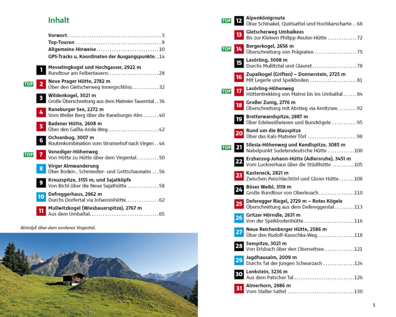 Pocketformaat Duitstalige wandelgids voor Osttirol. Deze gids bevat duidelijke kaartjes met de wandelingen erop ingetekend, hoogteprofielen, grafieken, beschrijving van de route en beknopte beschrijving van bezienswaardigheden en foto's. De wandelingen variëren van kort (een paar uur) tot maximaal een hele dag. Van de routes is ook een GPS-track beschikbaar.