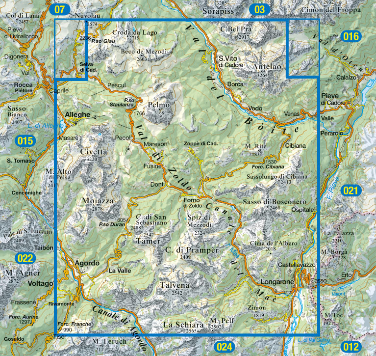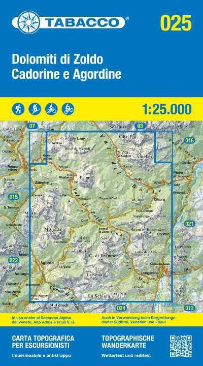 Wandelkaart Dolomiti Di Zoldo, Cadorine | Tabacco 25 | 1:25.000 | ISBN 9788883151590