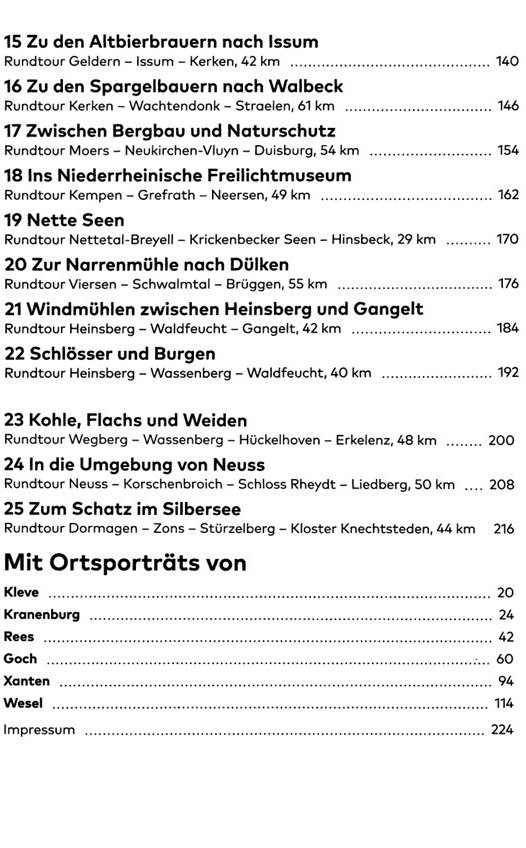 Deze gids bevat 25 geselecteerde rondritten langs goed bewegwijzerde knooppunten naar de mooiste bezienswaardigheden in de regio: naar kastelen, kerken en windmolens, musea en historische plaatsen van Romeinse kampementen tot gebouwen uit de Middeleeuwen en de Pruisische tijd. Voorzien van verklarende teksten, enthousiasmerende foto's en handige overzichtskaarten.